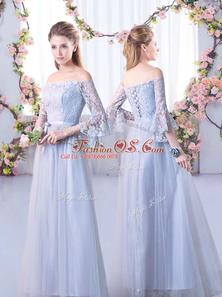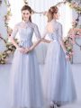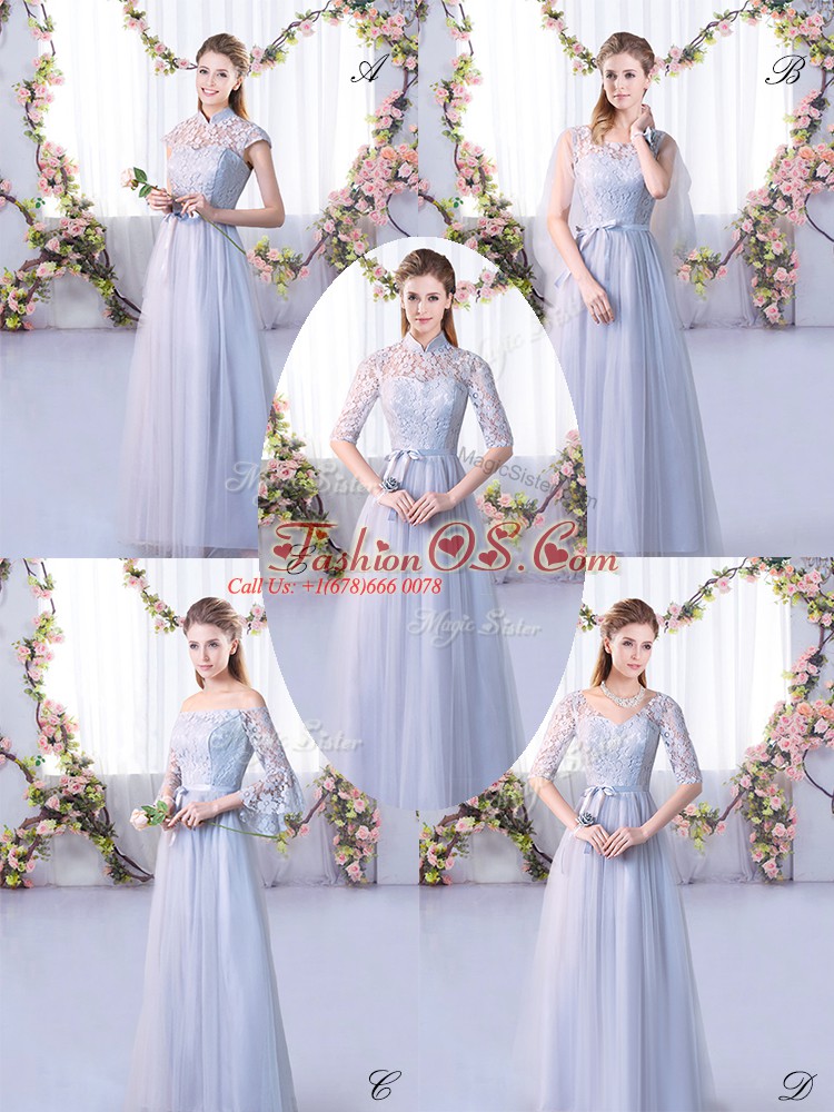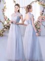 Lace Quinceanera Court Dresses Grey Lace Up Cap Sleeves Floor Length