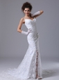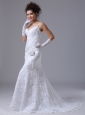 Lace Spaghetti Strap Column Garden / Outdoor Fitted Wedding Dress For 2013