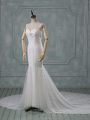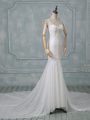 Lace Spaghetti Straps Sleeveless Court Train Backless Beading and Lace Wedding Gown in White