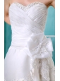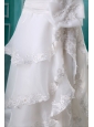 Do you want to experience the felling of princess? This pure strapless wedding dress is your best choice. Beaded weetheart neckline features a ruched bodice and a a chic hand made flower hug your waist frame. Layers of skirt decorated with lace hem and cathedral train to create a fascinating look. Hidden zipper up completes the whole look. A gorgeous and sassy dress makes you outstanding in your big day.