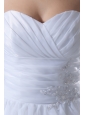 Be the belle of the ball in this fabulous vintage-inspired gown. This white wedding dress features sweetheart neckline,and the ruched bodice can define you natural waistline,the floor length skirt with exquisite appliques flows freey to create a lovely court train.A lace up back completes this fabulous design.You will be the most beautiful brides in that day.