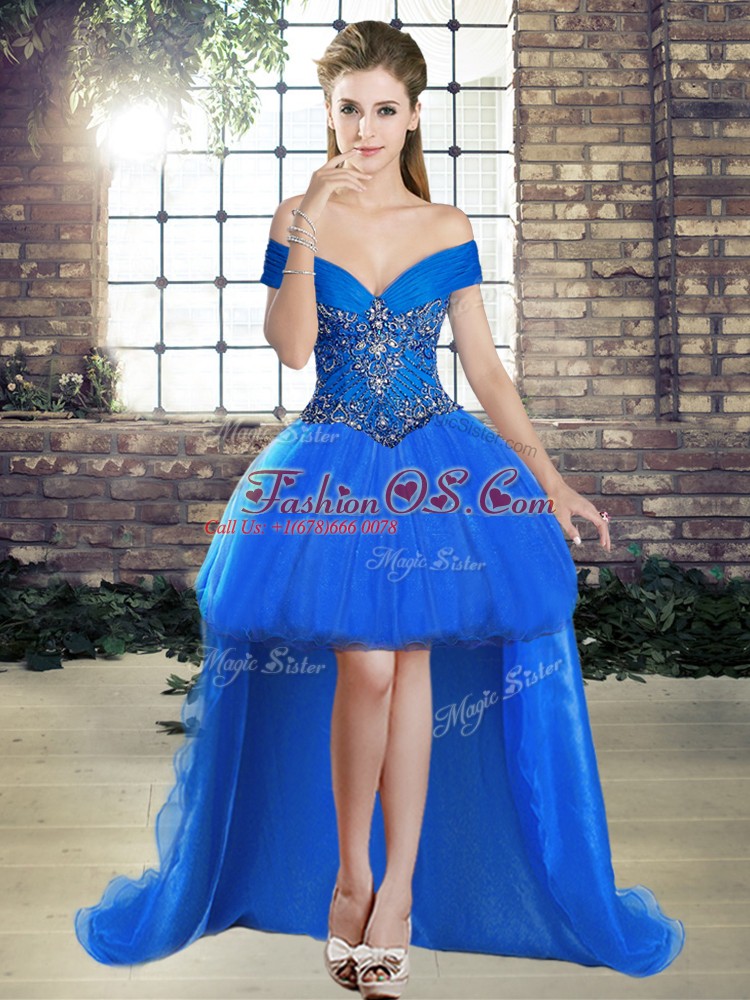 Home >  Quinceanera Dresses >  Detachable Quinceanera Skirts > Lace Up 15 Quinceanera Dress Royal Blue for Military Ball and Sweet 16 and Quinceanera with Beading Brush Train