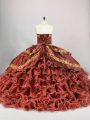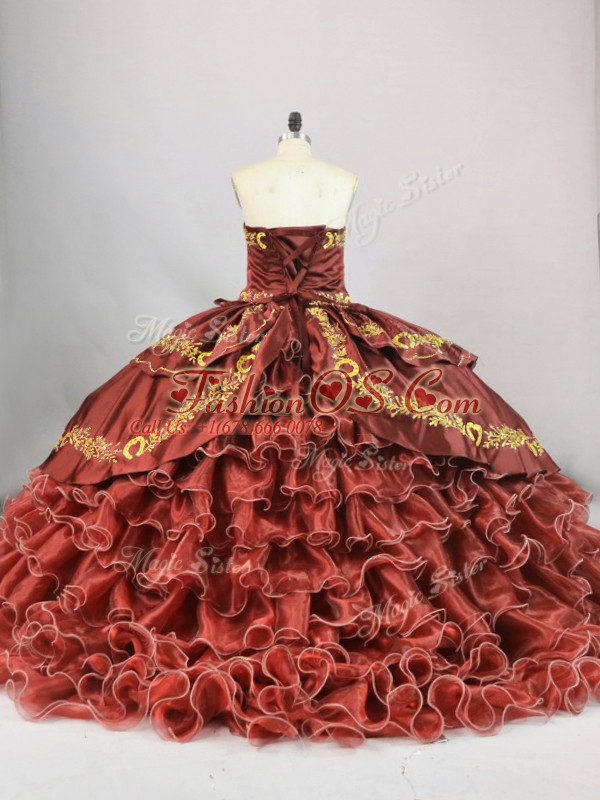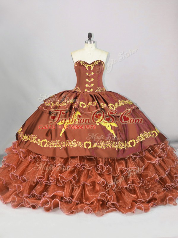Lace Up 15th Birthday Dress Brown and In with Embroidery and Ruffled Layers Brush Train