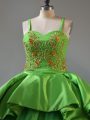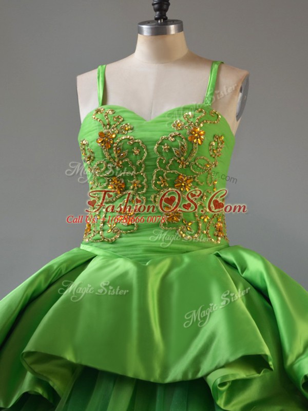 Lace Up Ball Gown Prom Dress Green for Sweet 16 and Quinceanera with Beading and Embroidery and Pick Ups Court Train