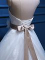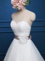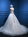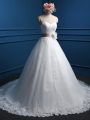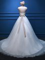 Lace Up Bridal Gown White for Wedding Party with Appliques and Hand Made Flower Brush Train