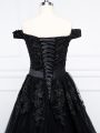 Lace Up Military Ball Gowns Black for Prom and Military Ball and Sweet 16 with Beading and Lace and Appliques Brush Train