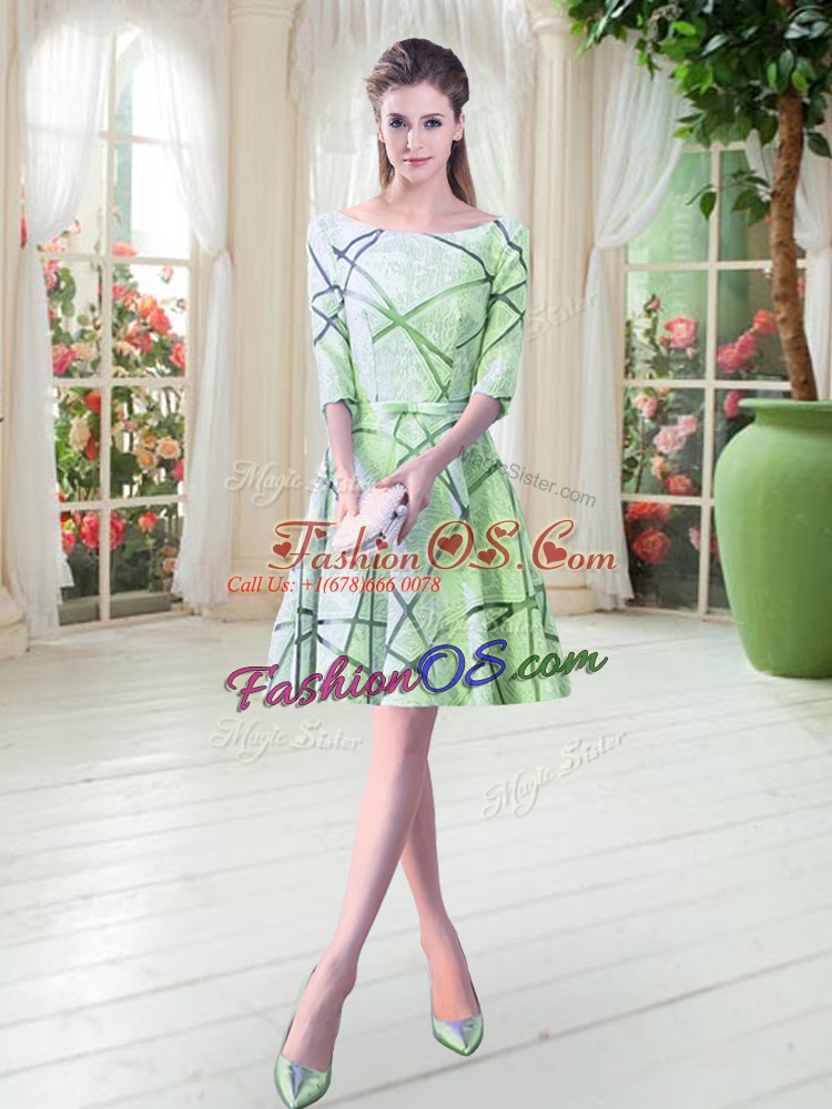 Lace Up Prom Party Dress Half Sleeves Knee Length Ruching