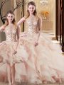 Home >  Quinceanera Dresses >  Detachable Quinceanera Skirts > Lace Up Quinceanera Dresses Peach for Military Ball and Sweet 16 and Quinceanera with Beading and Ruffles Brush Train