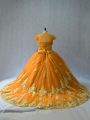 Lace Up Quinceanera Gown Gold for Sweet 16 and Quinceanera with Appliques Court Train