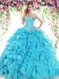 Lace Up Sweet 16 Dress Baby Blue and In for Military Ball and Sweet 16 and Quinceanera with Beading and Ruffles Sweep Train