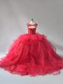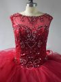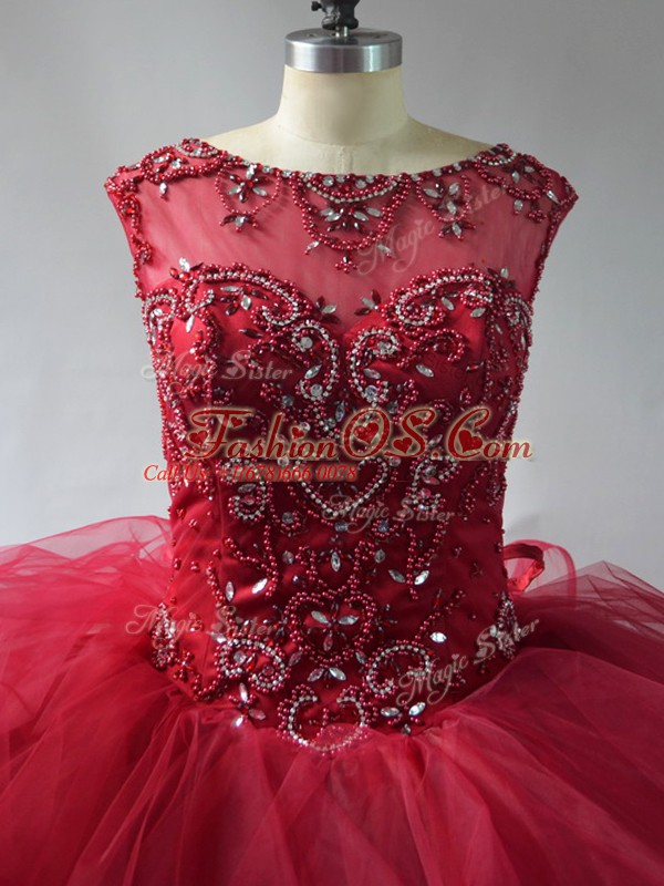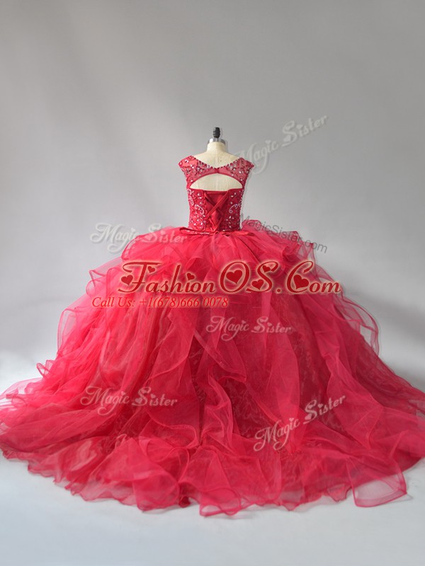 Lace Up Sweet 16 Dresses Wine Red for Sweet 16 and Quinceanera with Beading and Ruffles Brush Train