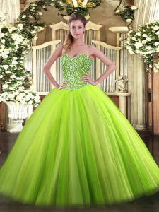 Lace Up Sweetheart Beading Sweet 16 Dress Tulle Sleeveless