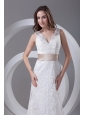 Lace V-Neck Sashes / Ribbons Brush / Sweep Beautiful Wedding Dress Column
