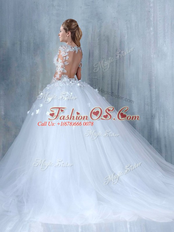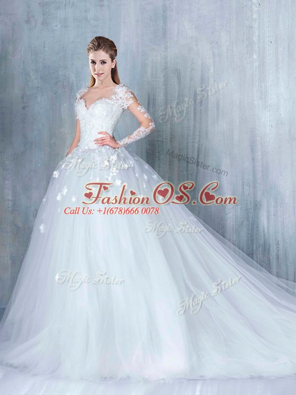 Lace Wedding Gown White Backless Long Sleeves Court Train