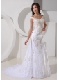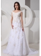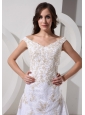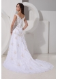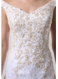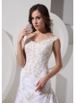 Lace White Off The Shoulder Neckline Brush Train Wedding Dress With Appliques Decorate