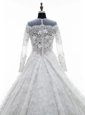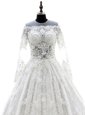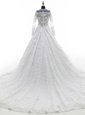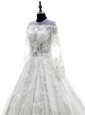 Lace White Wedding Dresses Wedding Party and For with Appliques Scoop Long Sleeves Court Train Zipper