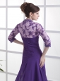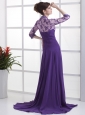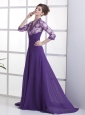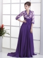 Lace With Beading Decorate Up Bodice V-neck 3/ 4 Sleeves Purple Brush Train 2013 Mother Of The Bride Dress