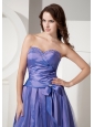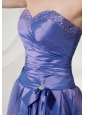 Lace-up Custom Made Sweetheart Neckline Blue Prom Dress With Beaded and Bow Decorate Tulle