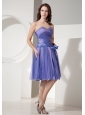 This short prom dress will show your fun side! This creation features a modest sweetheart and ruched waistband adorned with ruchings on the mid-section and also ribbon on the waist part makes you more sassy. The short skirt is overlayed with a two tonal organza with whimsical ruched skirt creating a dramatic effect.The lace up back makes for easy off and on and secures the dress in place.