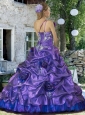 Latest A-line One Shoulder Appliques and Hand Made Flowers Quince Dress in Purple