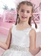 Latest Ankle Length Belted with Beading Flower Girl Dress with Lace Up