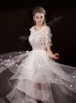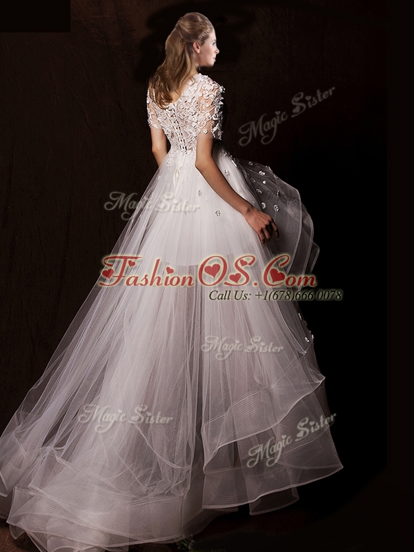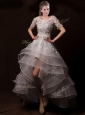 Home >  Wedding Dresses >  Romantic Wedding Dresses > Latest Appliques High Low Wedding Dresses with Short Sleeves
