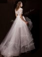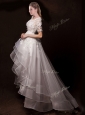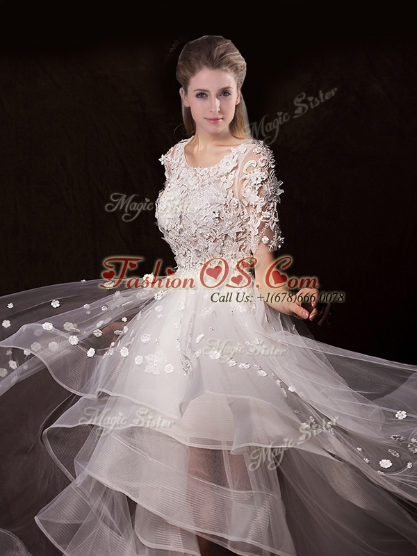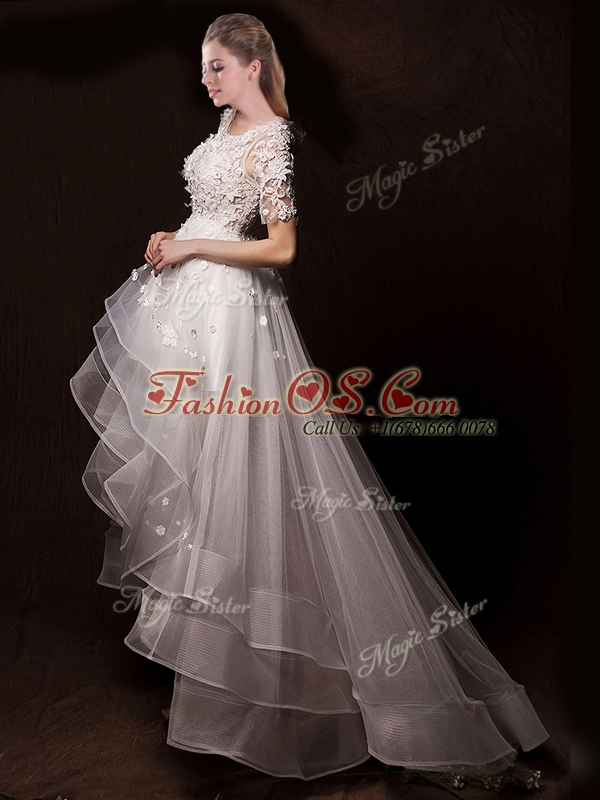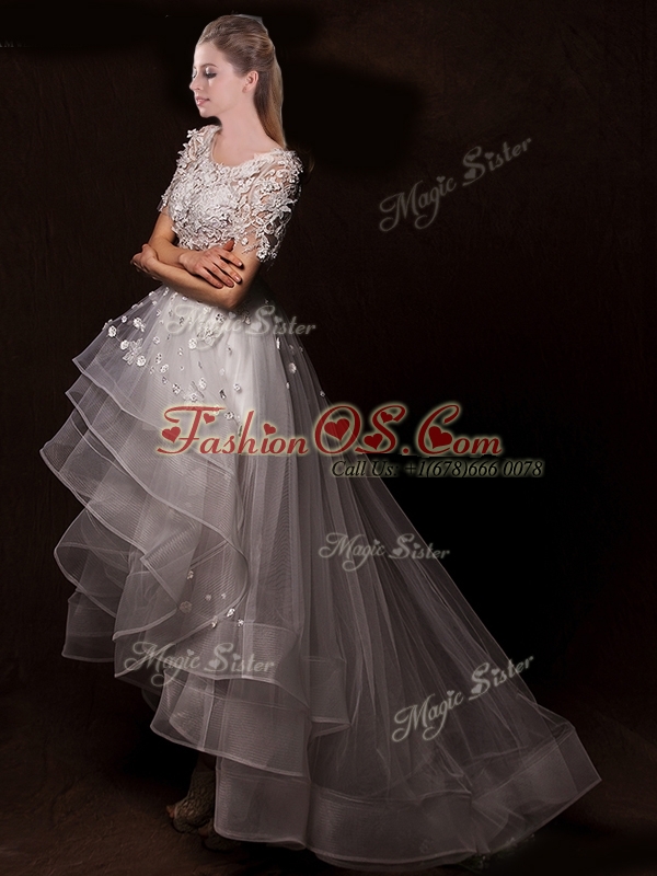 Latest Appliques High Low Wedding Dresses with Short Sleeves