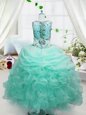 Home >  Special Occasion Dresses >  Little Girl Pageant Dresses > Latest Baby Blue Sleeveless Floor Length Beading and Ruffles and Pick Ups Lace Up Kids Pageant Dress