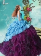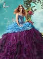 Latest Beaded and Ruffled Purple and Blue Quinceanera Dress in Taffeta and Organza