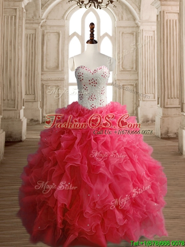 Latest Beaded Bodice and Ruffled Quinceanera Dress in Coral Red