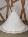 Latest Beading and Appliques Wedding Dress White Zipper Sleeveless Court Train