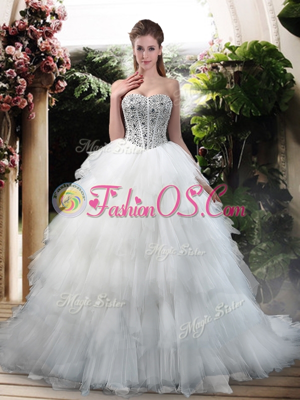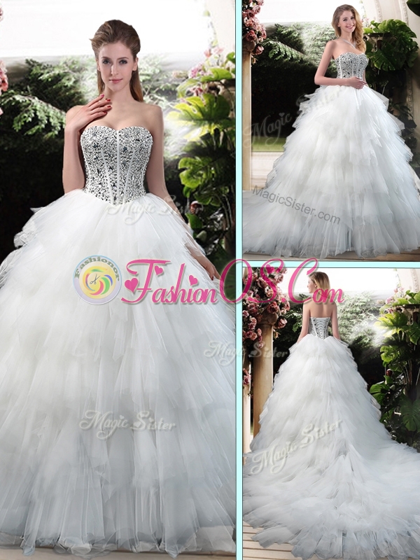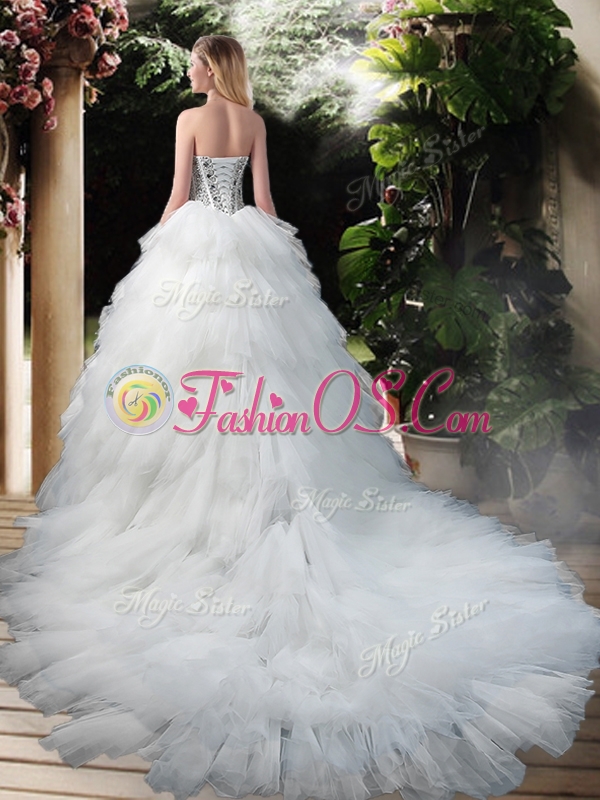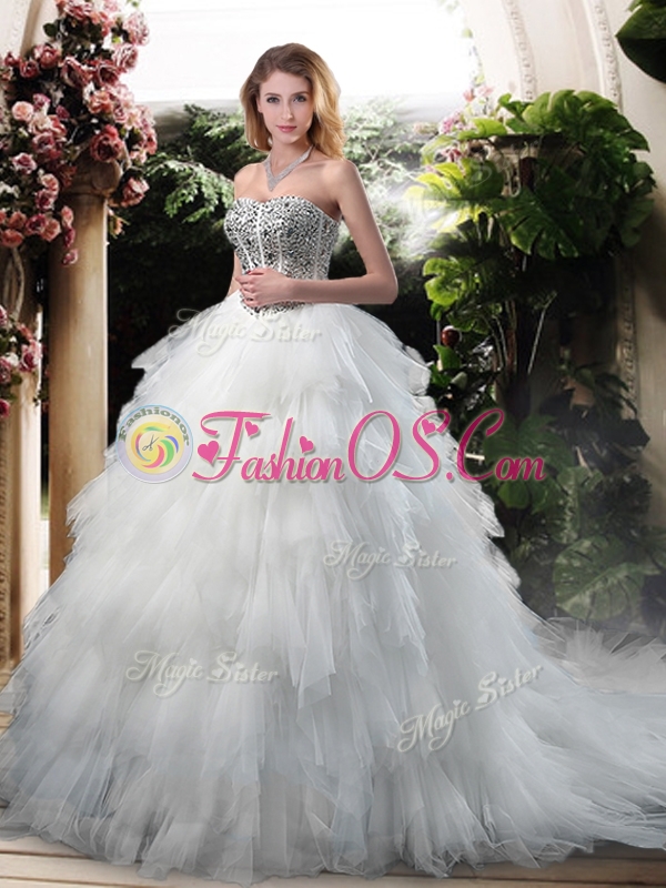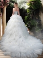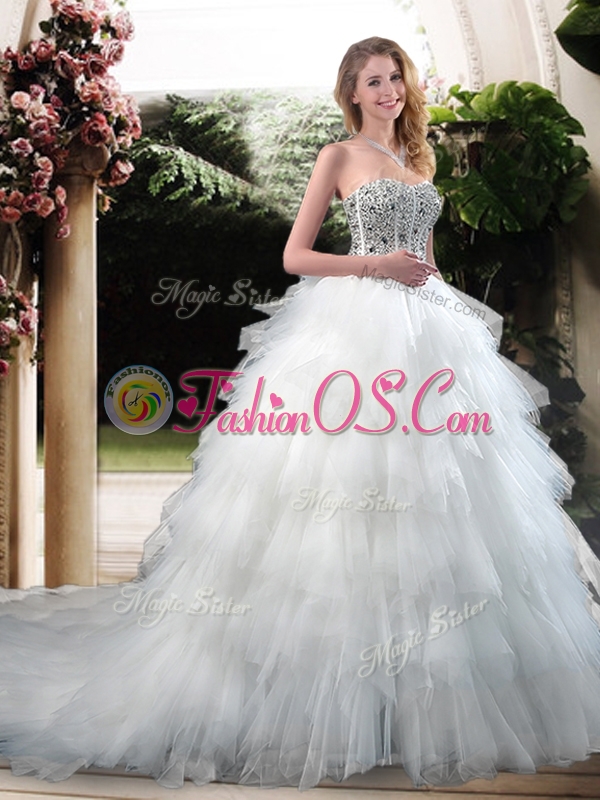 Latest Beading and Ruffles Wedding Dresses with Court Train