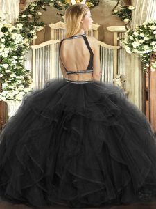 Latest Black Sleeveless Tulle Backless Ball Gown Prom Dress for Military Ball and Sweet 16 and Quinceanera