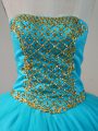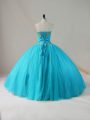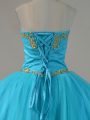 Latest Blue Tulle Lace Up Strapless Sleeveless Floor Length Sweet 16 Dresses Beading