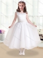 Latest Cap Sleeves Flower Girl Dresses with Beading and Appliques