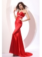 Home >  Prom Dresses >  Fashionable Prom Dresses > Latest Column V-neck Red Beading Prom Dress for 2014 Spring