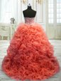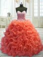 Latest Coral Red 15th Birthday Dress Sweetheart Sleeveless Sweep Train Lace Up