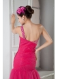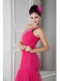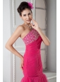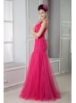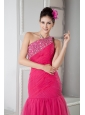 Latest Coral Red Mermaid Prom Dress One Shoulder Beading Floor-length Tulle