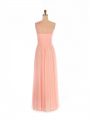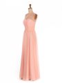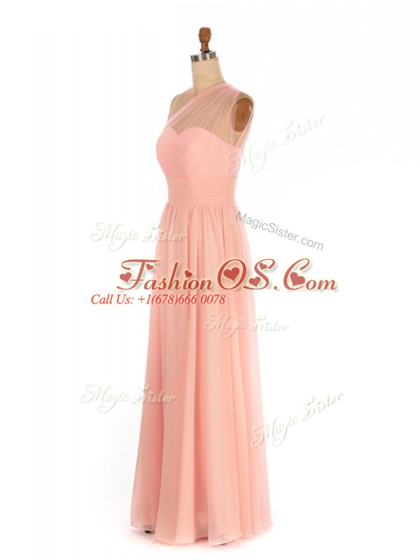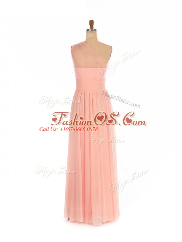 Latest Empire Bridesmaid Dress Peach One Shoulder Chiffon Sleeveless Floor Length Side Zipper