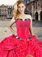 Latest Floor Length Lace Up 15th Birthday Dress Coral Red and In for Military Ball and Sweet 16 and Quinceanera with Beading and Appliques and Ruffles