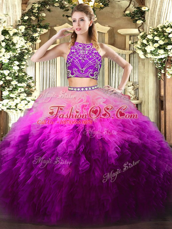 Latest Floor Length Multi-color Quinceanera Dresses Tulle Sleeveless Beading and Ruffles