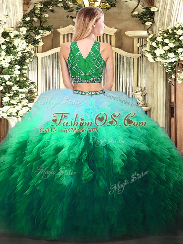 Home >  Quinceanera Dresses >  Best Quinceanera Dresses > Latest Floor Length Multi-color Quinceanera Dresses Tulle Sleeveless Beading and Ruffles