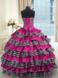 Home >  Quinceanera Dresses >  Unique Quinceanera Dresses > Latest Fuchsia Sleeveless Floor Length Embroidery and Ruffled Layers Lace Up Vestidos de Quinceanera