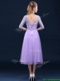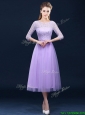 Latest Half Sleeves Tea Length Laced Bridesmaid Dresses in Lavender