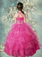 Home >  Special Occasion Dresses >  Little Girl Pageant Dresses > Latest Halter Top Floor Length Zipper Little Girl Pageant Dress Rose Pink and In for Party and Wedding Party with Beading and Ruffled Layers