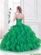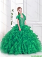 Latest Halter Top Quinceanera Dresses with Beading and Ruffles in green