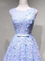 Latest Lavender Lace Up Scoop Belt Prom Evening Gown Tulle Sleeveless