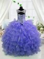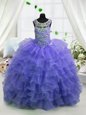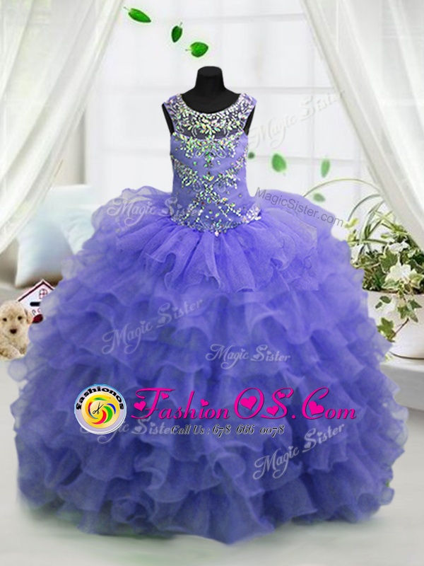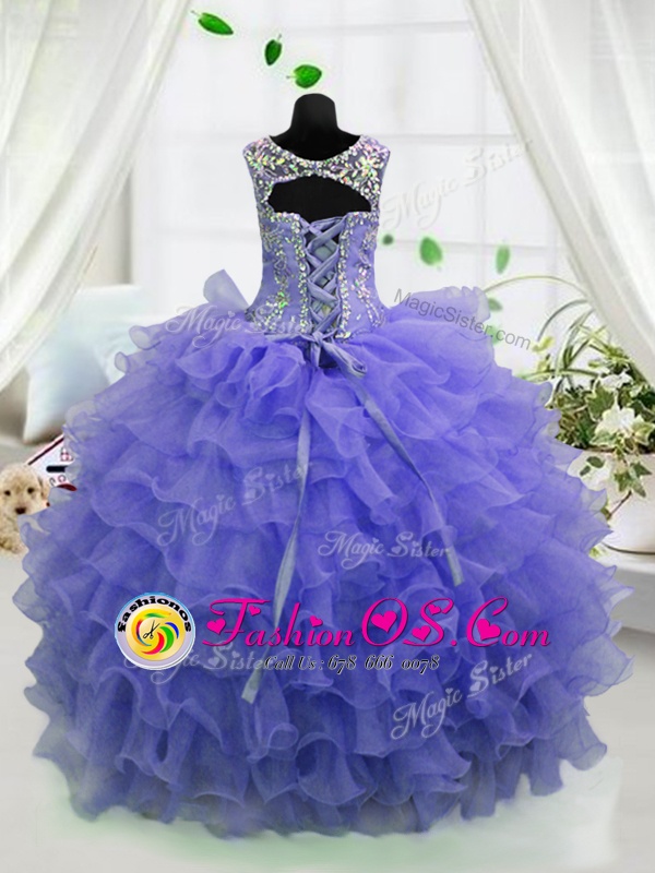 Home >  Special Occasion Dresses >  New Style Little Girl Pageant Dresses > Latest Lavender Organza Lace Up Scoop Sleeveless Floor Length Little Girl Pageant Dress Beading and Ruffled Layers