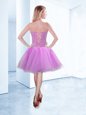 Latest Lilac Sweetheart Lace Up Beading Prom Dress Sleeveless
