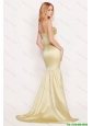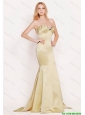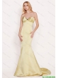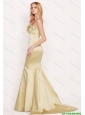 Latest Mermaid Sweetheart Gold Prom Dresses with Brush Train 2016